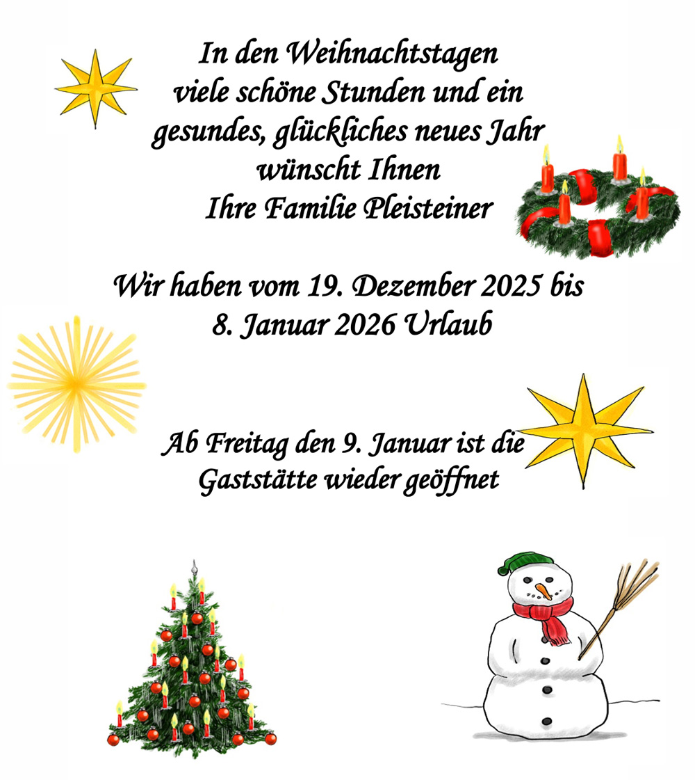 Unsere Speisekarte umfasst heimische regionale Küche. Wir bevorzugen kurze Wege und kaufen vor Ort. Die Zutaten sind täglich frisch ob vom Metzger, Bäcker oder Gärtner. Unser Frühstückbüffet hält Sie für ihre geplanten Aktivitäten in Schwung. Für unsere Hausgäste kochen wir täglich frisch und auch nach Wunsch.